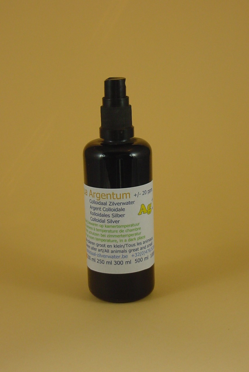 Laden... Even geduld...Vertrekkend van gedemineraliseerd water (strijkijzerwater) wordt er door de generator een gepaste stroom door twee zilverelektroden (99.99 %) gestuurd, waardoor Colloïdaal Zilverwater ontstaat dat microscopisch kleine positief geladen zilverdeeltjes bevat.